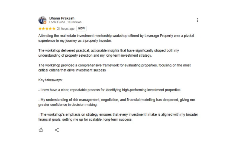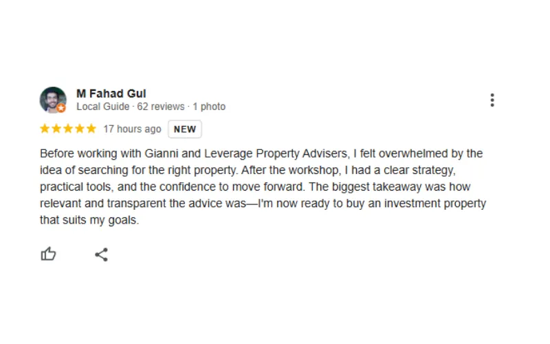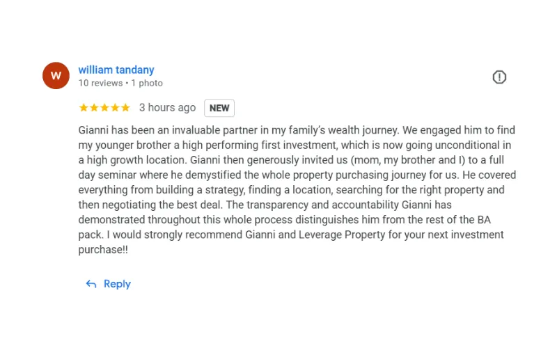 Many of my clients are first-time investors. I break the process down step-by-step, from strategy and finance all the way through to sourcing, negotiation, due diligence, and post-settlement support. You’ll walk away not just with a property, but an understanding of how this property will help you meet your goals.